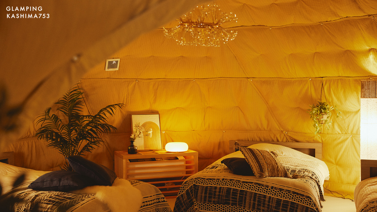 「753」は、鹿嶋エリアで民泊施設の建築や運営サポートを行ってきたハウスメーカー大和ハウジングが立ち上げたリゾート宿泊ブランドです。この「グランピング カシマ 753」のデザインにも、心を解き放つ場づくりのノウハウが注ぎ込まれています。