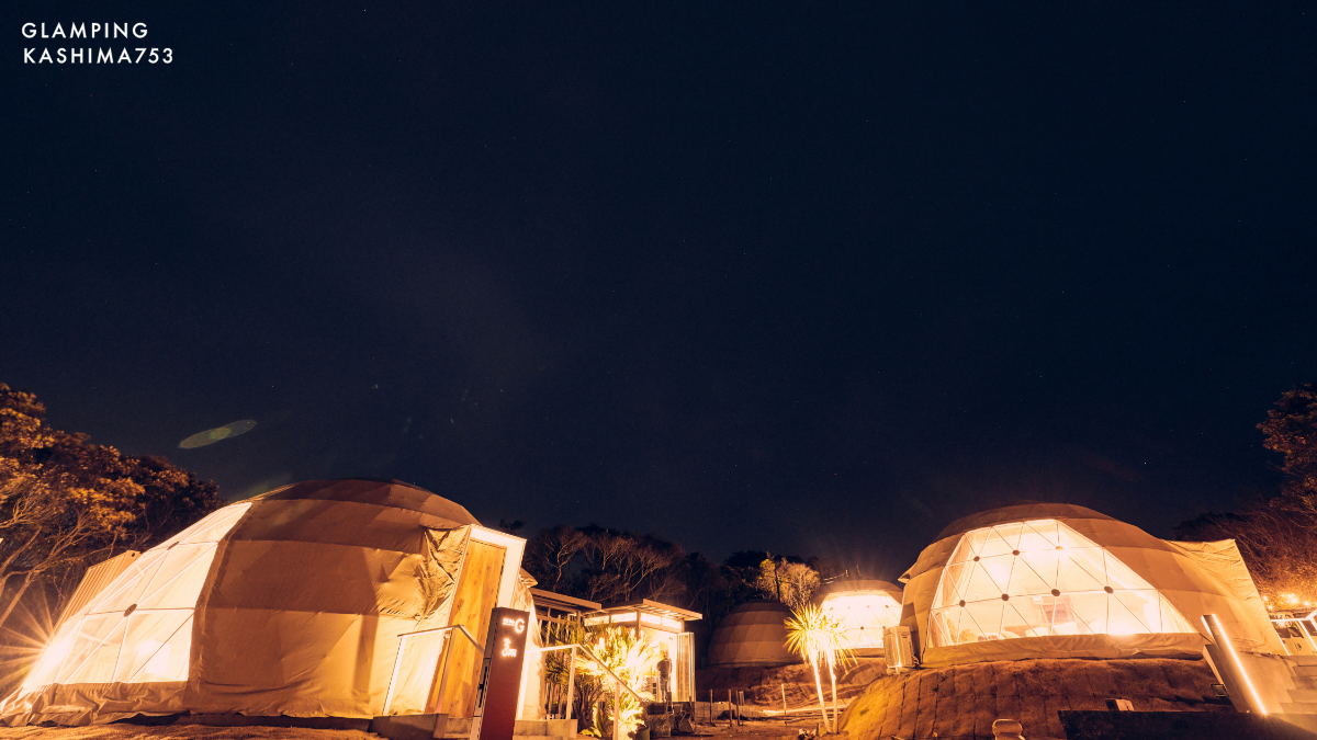 「Glamping Kashima 753(ナナゴーサン)」は、鹿嶋の自然の魅力をより多くの人に味わってもらうために誕生したグランピング施設です。浜辺からゆるやかにのぼる地形を活かして、どこからでもオーシャンビューと広い空を楽しめるリゾート空間ができました。