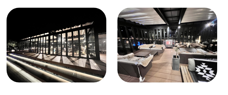 グランピングカシマ753では、寒さが本格化するこの時期、お食事スペース「プレミアムシート」の寒さ対策を強化中です。